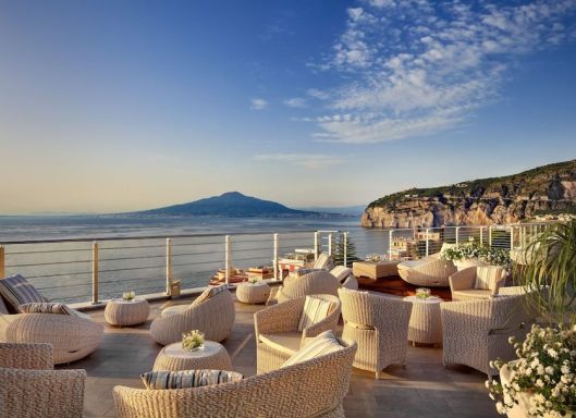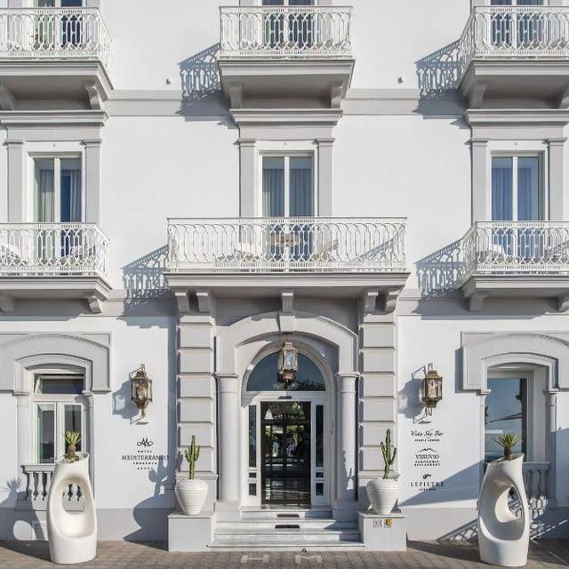 Hotel Mediterraneo is defined by its panoramic views and vibrant energy. Set above the Bay of Naples near Sorrento, this contemporary hotel offers sweeping sea views stretching toward Mount Vesuvius, creating a setting that feels open and luminous.