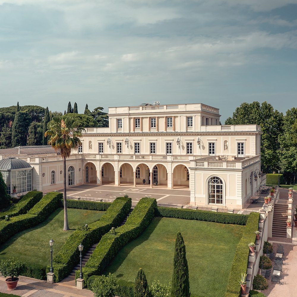 Villa Miani occupies a singular position above Rome, on Monte Mario, where the city opens up in full view, from the Vatican dome to the rooftops and hills beyond. Built in the early 20th century as a private residence, the villa was conceived around its outlook, with terraces and reception rooms deliberately oriented toward the panorama rather than inward ornament.