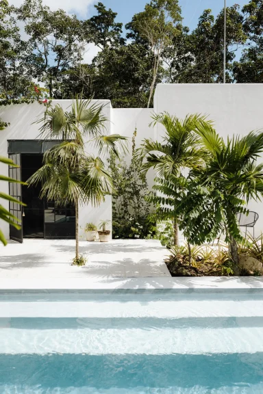 Kima Tulum is a small, design-led boutique hotel a few minutes from Tulum’s beach and downtown. It’s built around a central courtyard with a pool, lounge spaces, and open-air social areas that encourage people to gather, relax, and move around the space.