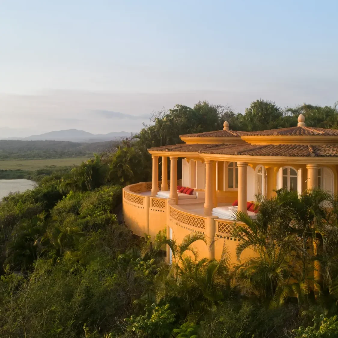 Cuixmala is a private estate on Mexico’s Pacific coast, created in the 1980s by Sir James Goldsmith as a personal retreat. The property sits within a large ecological reserve that includes jungle, coastline, farmland, and protected habitats. Wildlife is part of daily life here, deer, crocodiles, birds, and even zebras roam freely across the land, reflecting the estate’s long-standing commitment to conservation.