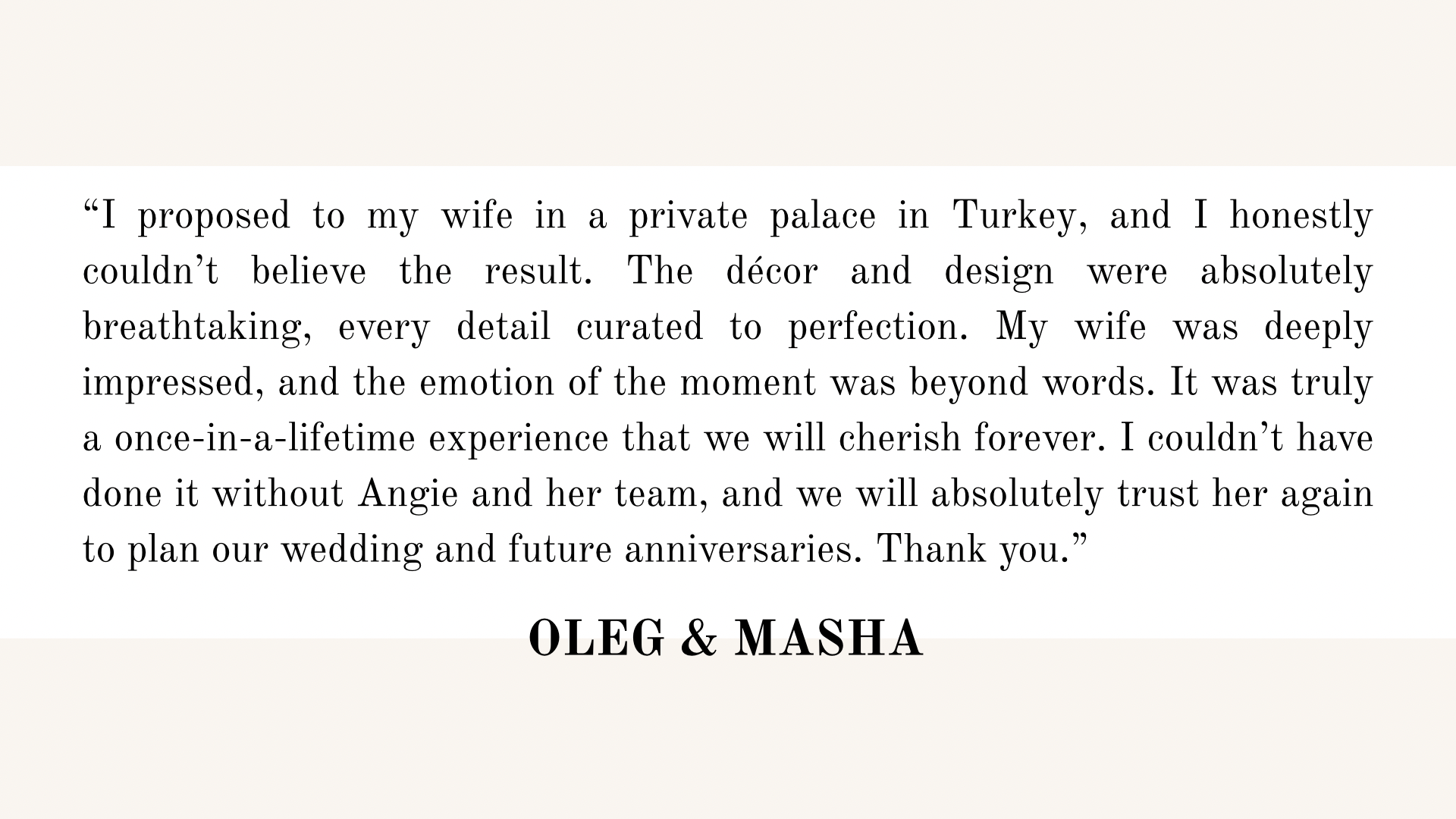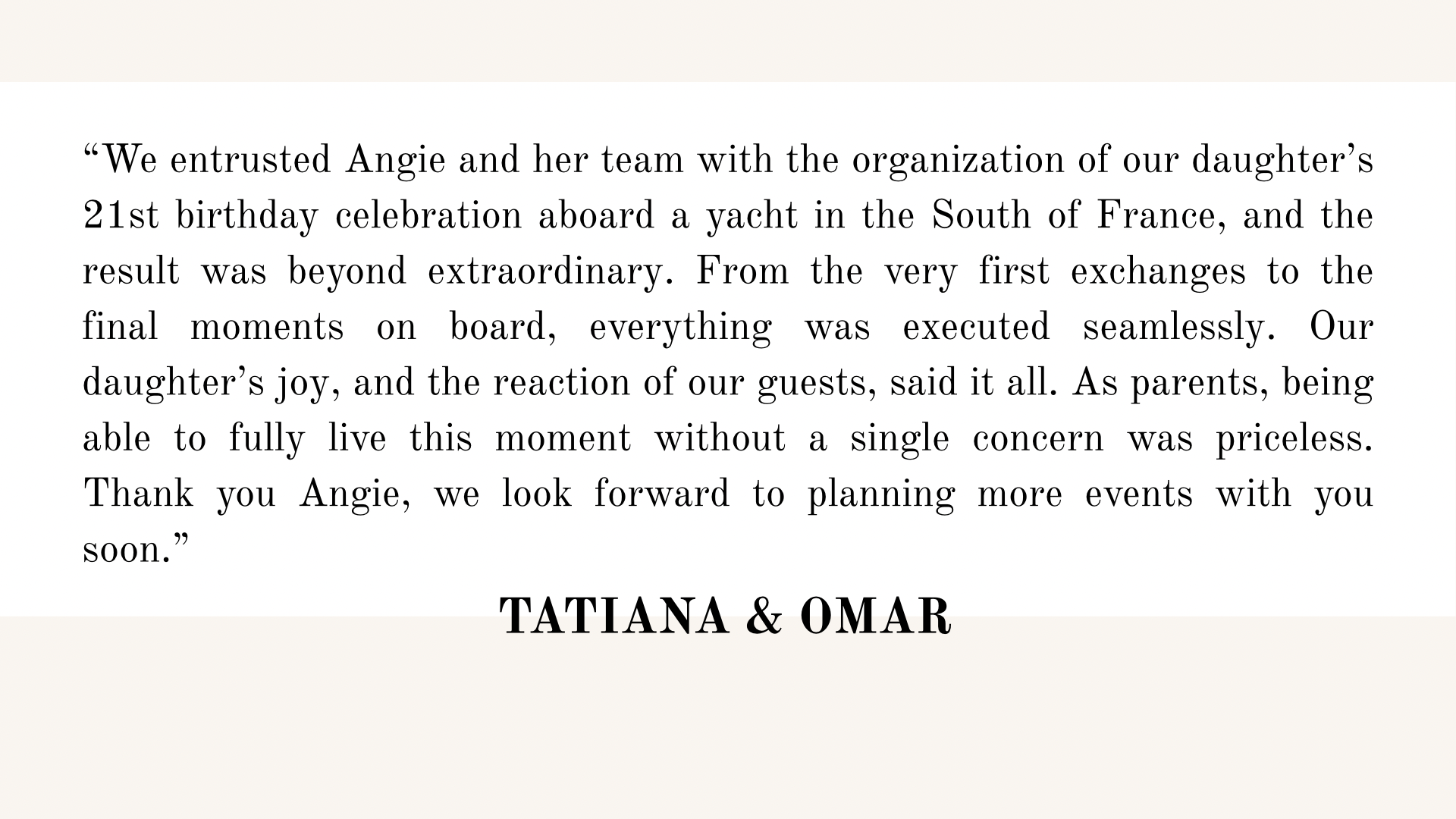 Angie Maraval Weddings has had the pleasure of collaborating with trusted partners around the world, united by shared standards of excellence and creativity.